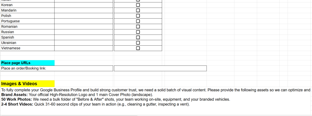• Exactly which categories and services to update on their GBP.